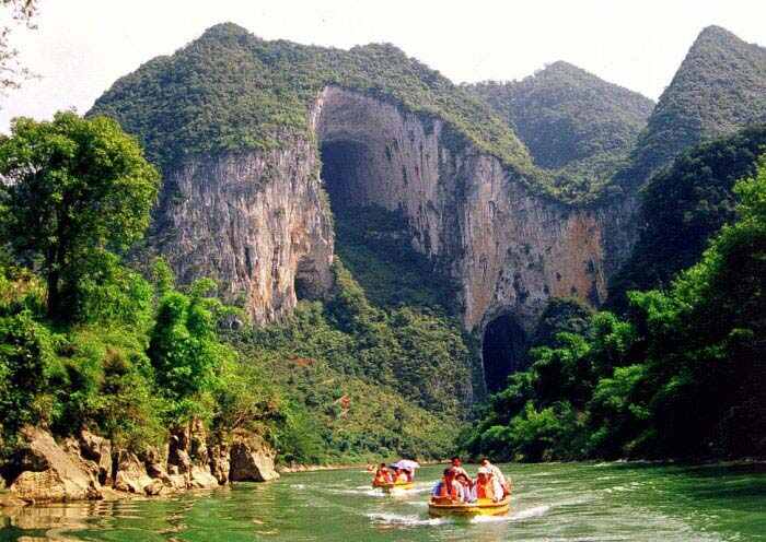 龍宮位于安順市西秀區龍宮鎮,整個(gè)溶洞長(cháng)達15公里,目前開(kāi)發(fā)游覽的只有長(cháng)1240米。其洞廳構造宛如神話(huà)中的龍王宮殿。“地下漓江、天上石林”的溶洞風(fēng)景價(jià)值高,被《中國國家地理雜志》評價(jià)為“中國最美麗的水溶洞”,龍宮溶洞中,全程乘船游覽。龍宮中還有中國最大的洞中瀑布——龍門(mén)飛瀑,高50余米,寬26米,十分壯觀(guān)。