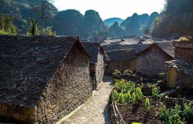 鎮寧縣,也就是黃果樹(shù)瀑布附近,有著(zhù)許多的布依族村寨。布依族村寨是典型的“石頭王國”,整村整寨不見(jiàn)一磚一瓦,房屋四周用石塊砌墻,房頂以片石為瓦, 室內間隔也以石砌成,院落的墻垣、寨中的通道、村前的小橋、梯田的??惨捕加檬^修筑,家中的用具,如碓、磨、缽、槽、缸,全是用石做成。最具有代表性的有滑石哨、高蕩村、石頭寨。
