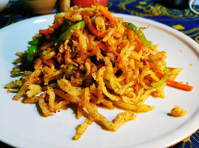 洋芋擦擦是延安特色小吃,洋芋擦擦制作原料非常的家常和程序都很簡(jiǎn)單粗暴,它是將土豆切成稍粗的絲,再配上干面粉,使每一根絲上都均勻地裹上一層面衣,然后上屜蒸熟即可。是到延安必吃美食。