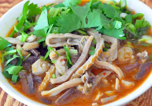 羊雜碎是延安特色小吃,[bai]由羊的頭、蹄、血、肝、心、腸、肚、肺等燴制而成,其味道香濃、營(yíng)養豐富。