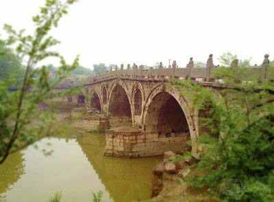 滄州杜林橋原名登瀛橋,是河北省重點(diǎn)文物保護單位。該橋坐落于滄州西15公里(滄縣杜林鎮中心)舊滄河路與滹沱河故道交匯處的杜林鎮,是橫跨于河支河上的三孔敞肩拱形石橋。該橋始建于公元1594年。