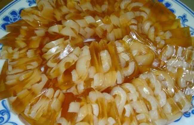 肉凍用豬皮制成,切成薄片片片晶瑩剔透,食用起來(lái)十分有嚼勁,富含滿(mǎn)滿(mǎn)的膠原蛋白在口中碰撞。它十分適合皮膚干燥的人和女生食用,多吃可以促進(jìn)造血和抗衰老。