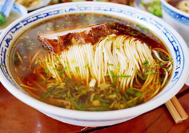 奧灶面以鱔骨,鴨骨,草藥包,魚(yú)鱗等食材熬制的高湯為底??瓷先ヵr紅透亮讓人食欲大增,吃上一口鮮,咸,甜這三種味道在舌尖打轉,讓人久久不能忘懷。