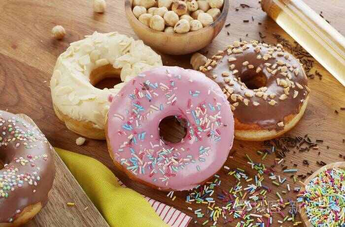 美國甜甜圈是一種圓環(huán)狀的面包,通常在表面撒上糖霜或其他甜蜜的配料。它可以是甜的或咸的,有各種口味和填充物可供選擇。