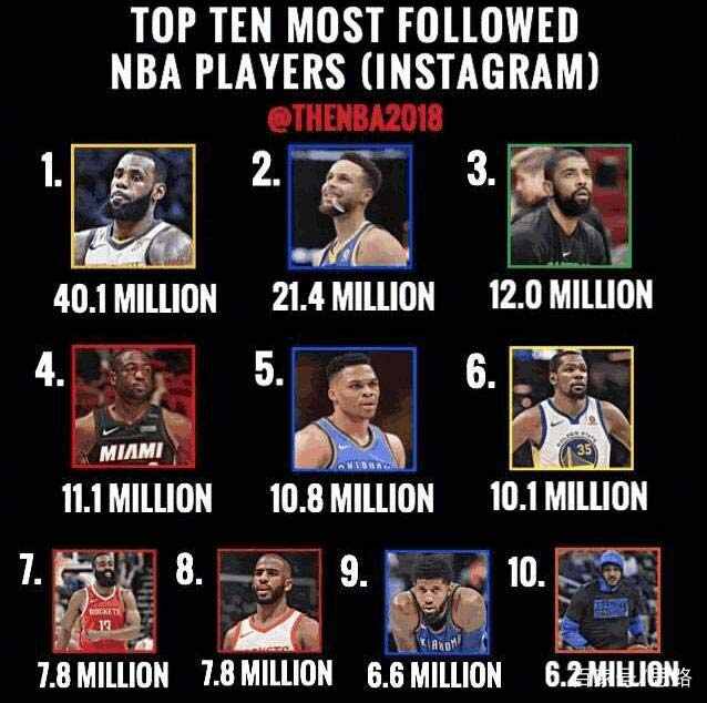 NBA球星每個(gè)都擁有極強的天賦和實(shí)力,這讓他們收獲了眾多的球迷擁護,一般來(lái)說(shuō)球星級別越高實(shí)力越強其球迷粉絲也會(huì )越多,但凡事總會(huì )有些個(gè)例,而近日美國媒體則公布了Instgram上粉絲最多的十位NBA球星!