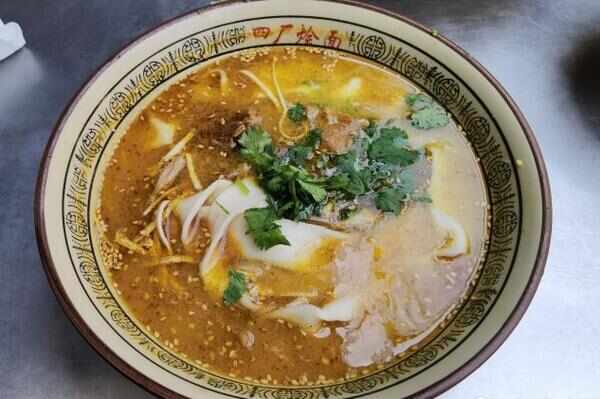 蕭記燴面的面條寬厚,吃起來(lái)勁道十足。它采用祖傳秘方熬制的老湯為底料,再配以羊肉、豆腐皮、香菜等佐料,使得這道燴面具有獨特的口感和鮮美的味道。蕭記燴面的面條與合記燴面相反,較寬厚,吃起來(lái)更有嚼勁。同時(shí),它所使用的老湯使得整個(gè)燴面的味道更加濃郁,讓人回味無(wú)窮。