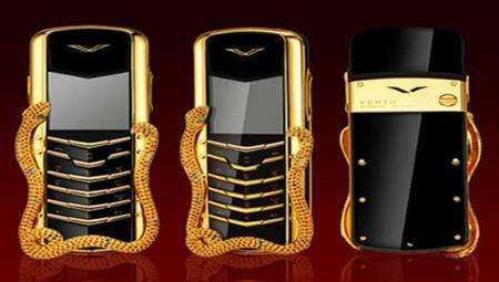 值得一提的是,這款由Vertu與法國珠寶商寶詩(shī)龍(Frédéric Boucheron)聯(lián)合推出的豪華手機共有Signature Cobra和Signature Python兩種型號,商家標榜要將珠寶鐘表技藝與移動(dòng)通信完美聯(lián)姻。其中,Signature Cobra限量版在蛇身鑲有439顆紅寶石,眼睛則為兩顆祖母綠。全球發(fā)行8部,國內僅一部。而后者共鑲嵌了48顆鉆石,純金鋪鑲款則共有943顆圓形切割的鉆石,在全球發(fā)行26部。