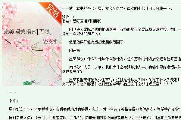 完美闖關(guān)指南是由網(wǎng)絡(luò )作家杏皮水所寫(xiě)的一部無(wú)限流恐怖小說(shuō),通過(guò)綜恐無(wú)限流的死亡樂(lè )園的設定和男女主強強組合,講述了主角們?yōu)榱送瑯幽康南麥缢劳鰳?lè )園而不斷闖關(guān)的故事。