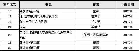 本榜單介紹的是2017年8月實(shí)體店虛構類(lèi)、非虛構類(lèi)、少兒類(lèi)暢銷(xiāo)書(shū)排行榜及榜單分析